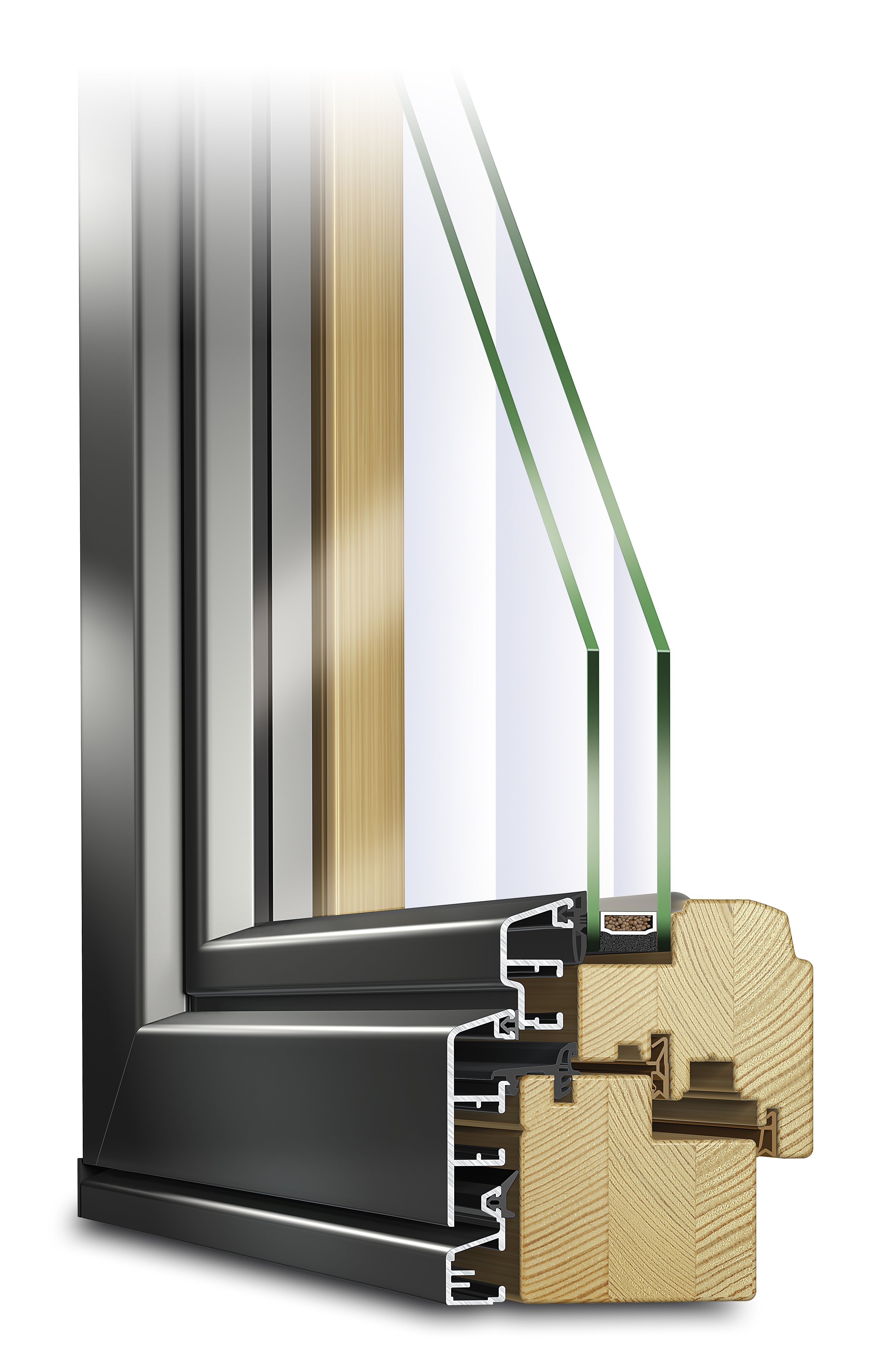 - hochwertiges Holz/Aluminium-Fenstersystem in 88 mm bis 98 mm Bautiefe