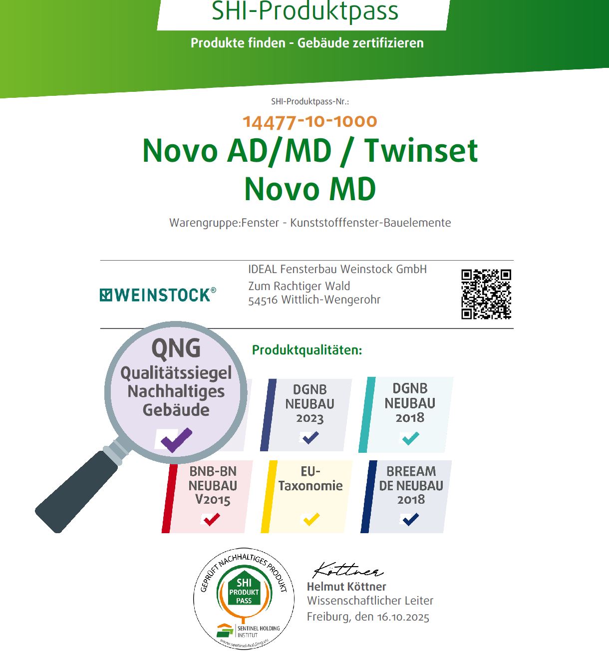 Downloaden Sie jetzt den SHI-Produktpass und integrieren Sie das Novo-Fenster in Ihr Projekt: https://www.sentinel-holding.eu/de/Portal/Produkte/Novo-AD-MD-Twinset-Novo-MD